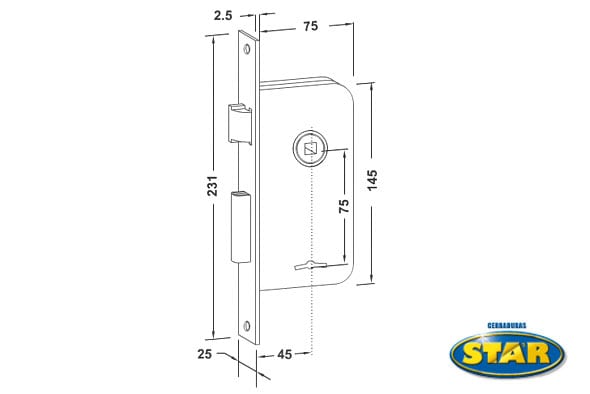 Cerradura «Seguridad» pasador rectangular, tipo Bocc.