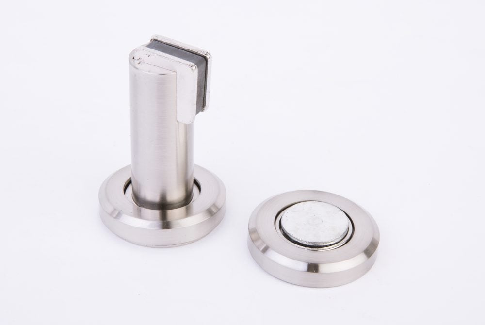 Retenedor magnético niquelado para puerta.